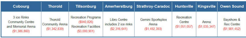 | Table 8; Comparing Municipal Recreation Facilities Source: Source: 2021 Budget Statements 33 - 40 |