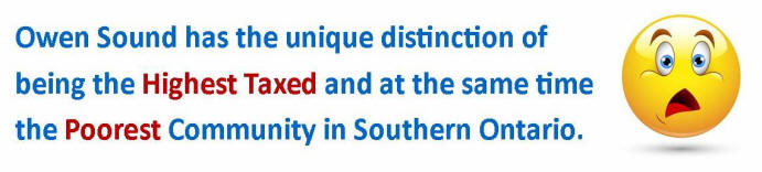 The above graph possibly explains why businesses like, McDonalds Flower Shop, moved to the Sunset Strip. Commercial tax rates must be driving business out of Owen Sound given the vast difference in tax rates. High Commercial also discourages new businesses from locating in Owen Sound. The result is Owen Sound is not growing and the absence of a strong, thriving commercial sector means that good paying jobs are scarce.